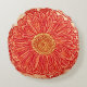 O travesseiro redondo em um impressão de uma margarida do Gerbera, com base em uma fotografia, transformada digital e na mão matizou - o amarelo da tanjerina, do pêssego e do ouro