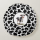 Este travesseiro decorativo é mostrado com um impressão de vaca branco e preto giro. Personalizar este item ou comprar conforme mostrado. imagem de estoque