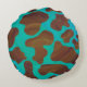 Almofada Redonda Impressão de Vaca Castanho e Teal