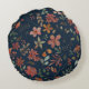 Almofada Redonda Impressão Floral de Aquarela Antiquada no Marinho