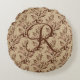 Almofada Redonda Inicial do Monograma em Grafia com Folhas Marrom e