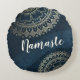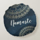 Yoga Malhação Studio/Instrutor de Meditação / Treinador Pessoal / Treinador de Vida / Healer / Mestre Reiki / Travesseiro Redondo de Terapia de Massagem. Símbolos de Mandala Floral de Folha de Ouro Moderna em Marinho Azul de Onda.