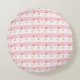 Linda alegria padrão cardíaco em torno do Travesseiro. Corações cor-de-rosa e vermelhos sobre fundo listrado branco e rosa. Que o amor e a alegria estejam sempre presentes em cada Lar!