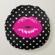 Lábios de bolinhas preto e branco modernos ao redor do travesseiro. Trendy, glamour, bold, você pode sair como está ou personalizar como quiser. Outras cores disponíveis.