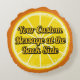Uma laranja inteira no lado frontal. Fatia laranja redonda no lado de trás. Texto personalizado de ambos os lados.