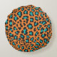 Chique, travesseiro redondo do impressão moderno, bonito do leopardo dos gatos grandes de animal selvagem no azul alaranjado, preto, e brilhante com uma listra preta, branco do aqua afiado com bandeira que preta você pode personalizar com uma inicial do nome e do monograma!