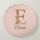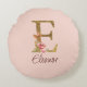 Almofada Redonda Letra Personalizada E Dourado Folha Brilho Rosas R
