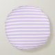 Almofada Redonda Lilac, púrpura e tiras doces brancas