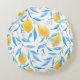 Almofada Redonda Limão de Aquarela e Folhas Azuis