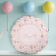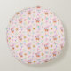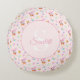 Transforme uma sala de brinquedos ou um berçário em um jardim de contos de fadas com este encantador travesseiro redondo. Contra um fundo macio de cor rosa bebê, um coelho rosa toca uma trombeta em um mundo caprichoso de borboletas roxas, corações sorridentes e flores de jardim.