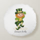 Almofada Redonda Lucky Green Gnomo & Clover em Branco