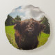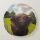 Almofada Redonda Luz verde do campo verde da vaca em lata negra