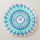 Almofada Redonda Mandala étnica da cerceta. monograma