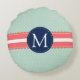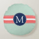 Almofada Redonda Monograma coral dos azuis marinhos do teste padrão