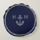 Almofada Redonda Monograma Costeiro de Âncora Azul Marinho Náutico