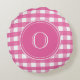 Almofada Redonda Monograma de Fuchsia Pink e Gingham Branco