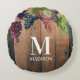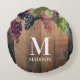 Almofada Redonda Monograma de Madeira e Uvas de Vinha Rústica