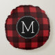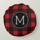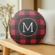Almofada Redonda Monograma do Padrão Rustic Red & Black Buffalo Xad