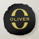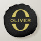 Almofada Redonda Monograma E Nome Preto E Dourado Personalizado