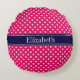 Almofada Redonda Monograma Nome Azul Naval Pontos Polka Brancos Fra