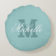 Nome personalizado monograma redondo Azul lacrimejo / travesseiro decorativo zíper turquesa. Design feminina com letra inicial monograma. Decoração elegante de chic home para sofá-cama de carro, etc. Boa ideia de presente para Dia de as mães ou Aniversário!