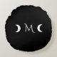 As luas minimalistas em crescente complementam seu monograma ou iniciais neste travesseiro decorativo redondo preto e branco de classe. ♡ Idyllfire