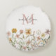 Apresentando nosso Travesseiro de Flores Flóridas Monogramadas de Cores-d-Água Selvagem. Apresentando ilustração aquosa da ilustração e texto do jardim de flores silvestres que pode ser personalizado no estilo romântico e elegante. Adequado para a menina e crianças.