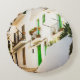 ALMOFADA REDONDA MOTOCICLO PRETO PERTO DA CONSTRUÇÃO DE PAREDE BRAN