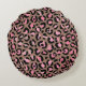 Travesseiro redondo chic com uma impressão-leopardo em rosa e preto num pano de fundo mocha.