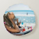 Almofada Redonda Mulher deitada no sol solta cobrindo seu rosto com