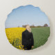 Almofada Redonda Mulher em casaco preto em pé sobre grama verde