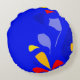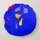 Folhas ligeiramente vermelhas, azuis, laranja e amarelas espiam deste travesseiro azul redondo.