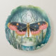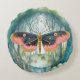 Uma delicada traça rosa e marrom contra o fundo de uma floresta misteriosa azul e verde.