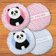 Este design tem um panda adorável na frente, e espaço para você adicionar um nome, uma data ou outro texto no verso. Você poderia personalizar isso para uma criança, por exemplo, apenas adicionar seu nome e data de nascimento. O fundo é um padrão de manchas em azul macio em branco, combinando em frente e atrás.