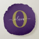 Almofada Redonda Nome de Script Monograma Personalizado Branco Puro