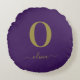 Almofada Redonda Nome do Script Monograma Personalizado Roxo E Dour