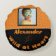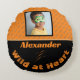 Almofada Redonda Nome Personalizado de Foto Laranja Negro Personali