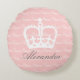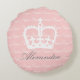 Este travesseiro redondo divertido apresenta uma coroa branca sobre um fundo cor-de-rosa pincelado com texto "Princesa" em branco. Personalize facilmente este design, adicionando um nome ou outro texto.