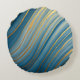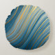 An abstract, fluid painting dominated by rich, deep, and luminous shades of blue, ranging from dark sapphire to lighter cerulean. The colors are applied in concentric and wavy stripes, creating a sense of dynamic, circular motion, reminiscent of water, waves, or agate stone. Striking, meandering lines of metallic gold weave across the surface, following the blue waves and providing a dramatic, luxurious contrast. The overall impression is one of elegant movement, depth, and richness.