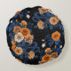 Almofada Redonda Oculto nas rosas, laranja e azul