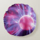 Tipo 80 anos! travesseiro redondo de 16" com uma imagem de luz colorida radiando de um Olho do globo de Tempestade. Roxo para trás.