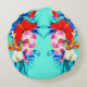 Almofada Redonda Orquídea tropical monstera monstera azul-lacrimejo