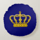 Linda coroa real ouro no Travesseiro azul-redondo real. Um presente ideal para todos!