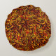 Imagem com curvas amareladas e manchas vermelhas vívidas que se assemelham a ouro e moldes de pintura texturizados.