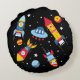 Outer Space Adventure Round Pillow – Rockets, Planets & UFO for Kids’ Room Decor