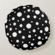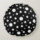 Almofada Redonda Padrão branco sobre Bolinhas preta