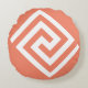 Almofada Redonda Padrão Chave Grega Laranja Branco Presente Tendênc