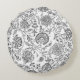 Almofada Redonda Padrão circular de Flor Preto e Branco