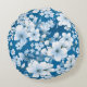 Almofada Redonda padrão das flores brancas, fundo azul,