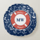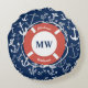 Almofada Redonda Padrão de Âncora Azul do Marinho Monograma Náutico